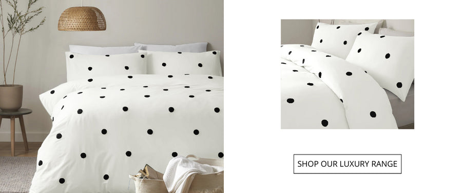 Rich cotton bedding with silk-like softness and a subtle luster effortlessly elevates the bed for a uniquely luxurious feel and finish.