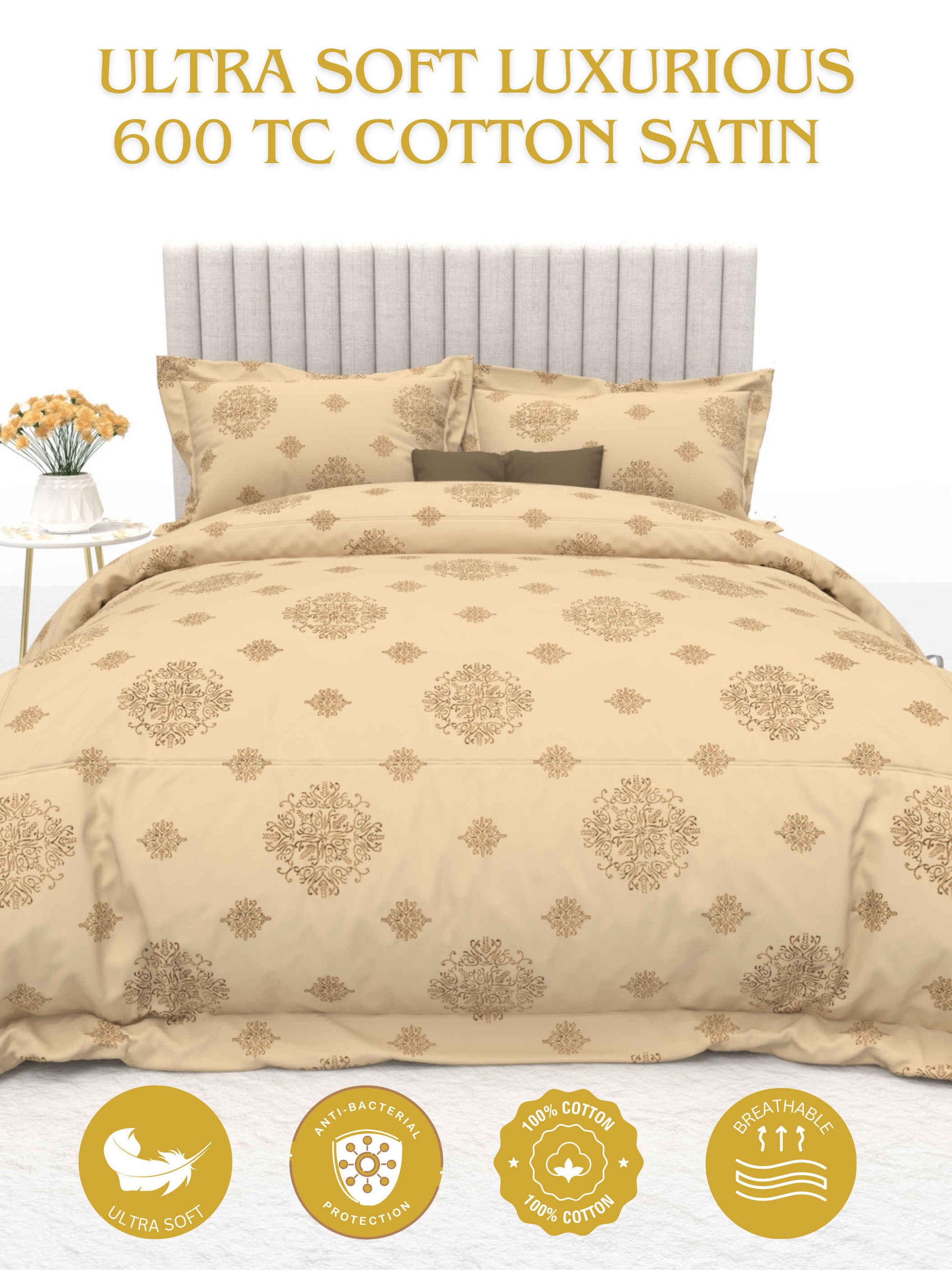 • Fabric: 100% Cotton Satin (600 Thread Count).