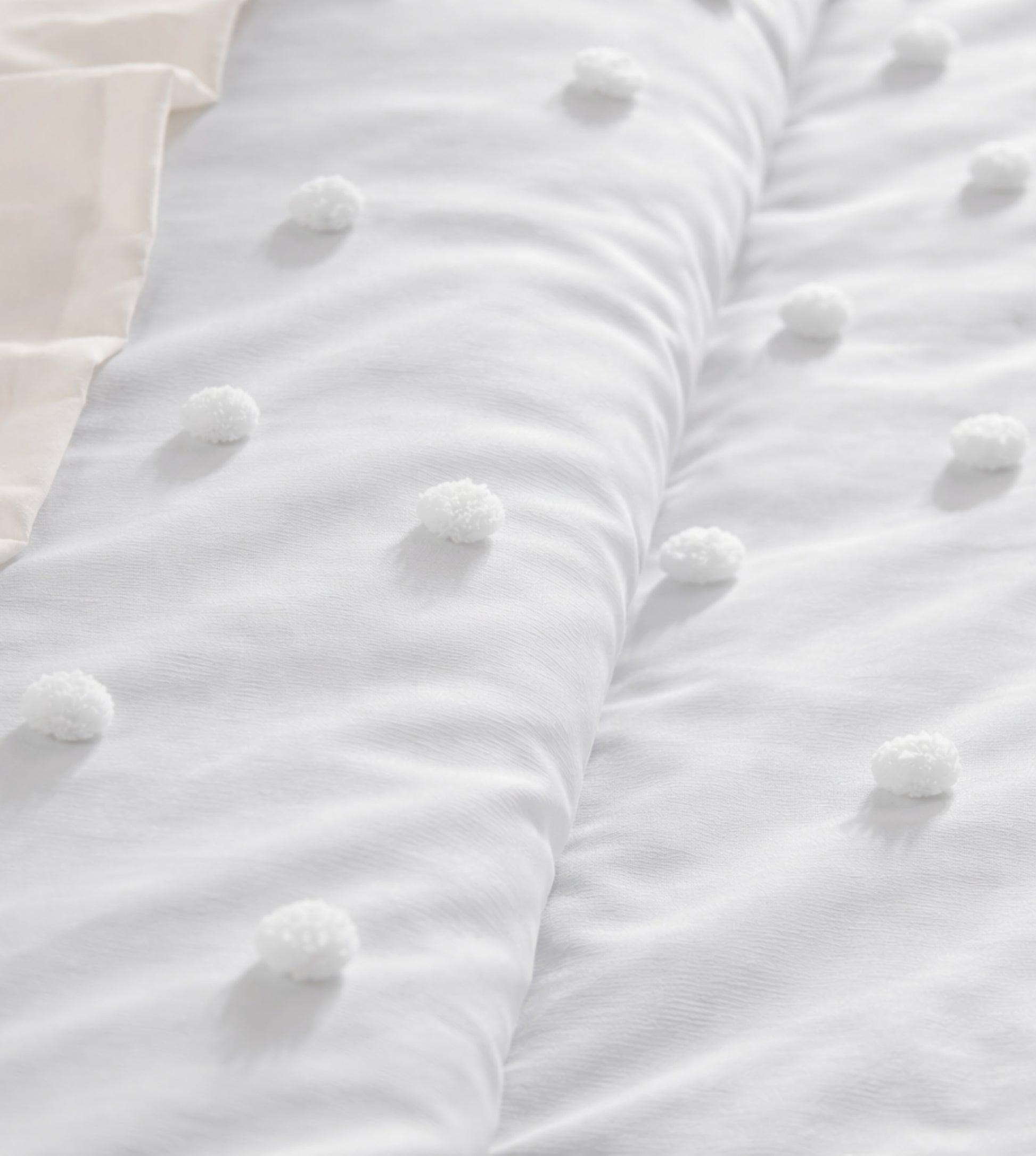 - Detailing: Meticulously hand-stitched pom pom accents on both the comforter and pillow shams for a sophisticated, textured finish.
